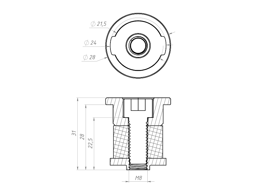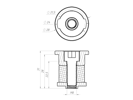 Торцевая резьбовая вставка предназначена для создания резьбового соединения с трубным профилем Ф28, обеспечивая надежную фиксацию и возможность дальнейшей установки других элементов.