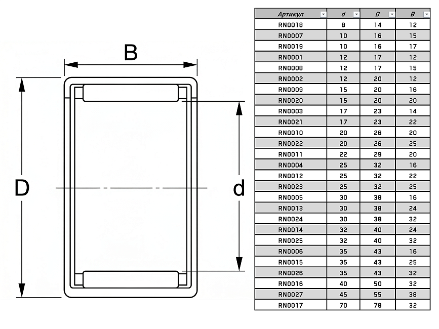 Тип тел качения: игольчатый ролик
