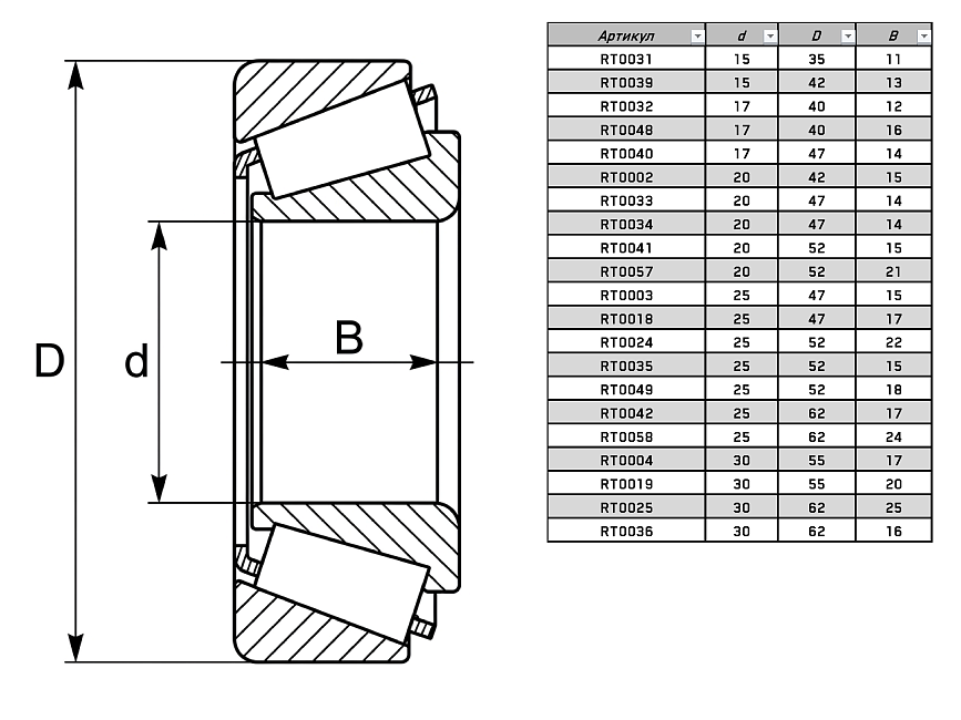| Тип тел качения: | конический ролик |