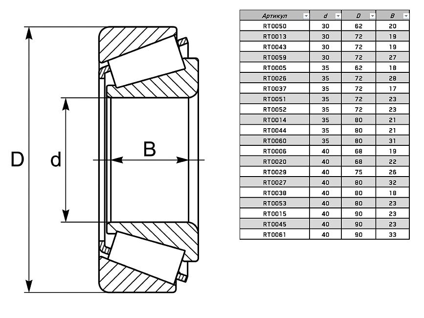 | Тип тел качения: | конический ролик |