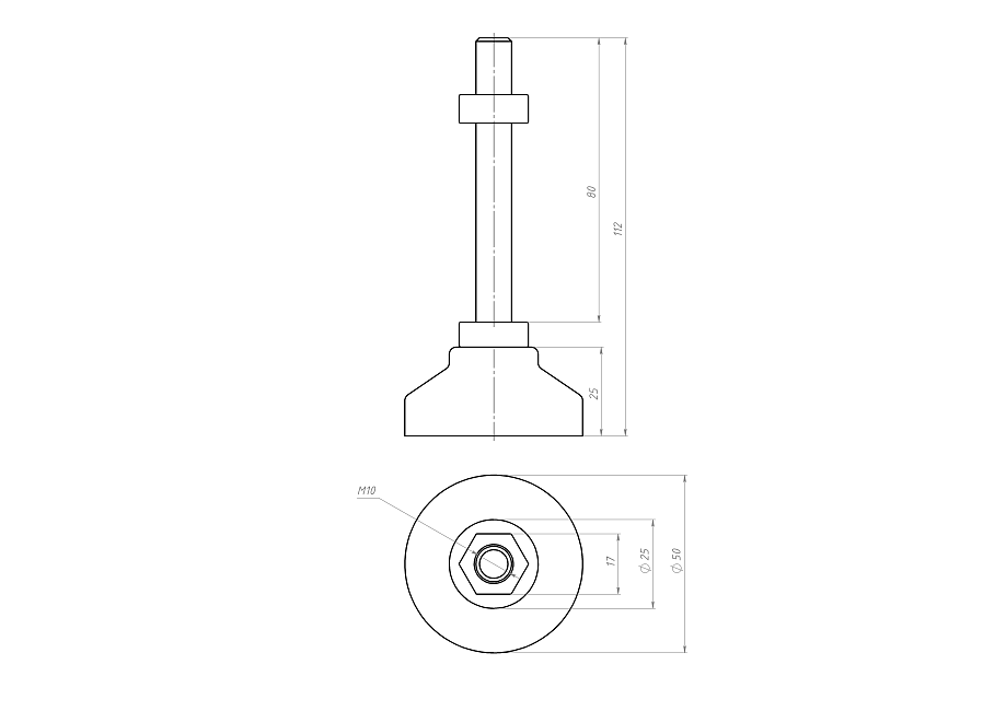 Опора регулируемая Ф50 М10х80, B688 Арт. B688