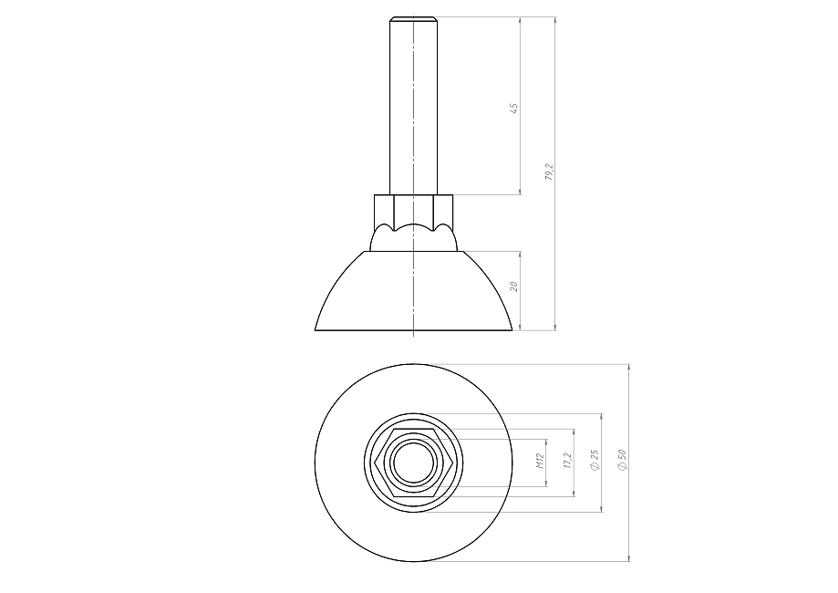 Опора резьбовая, шарнирная Ф50 М12х45, A955 Арт. A955