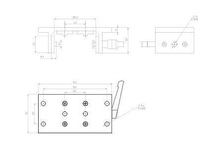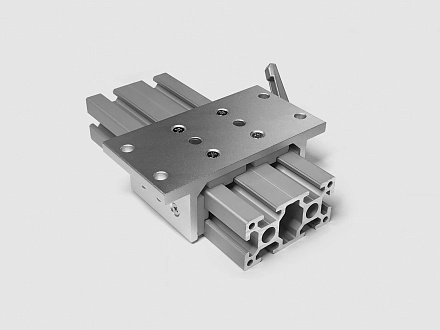 Алюминиевая скоба (слайдер) T-типа длиной 75 мм для широкого профиля 40х80 мм. Предназначена для создания подвижных узлов в силовых и крупногабаритных конструкциях.