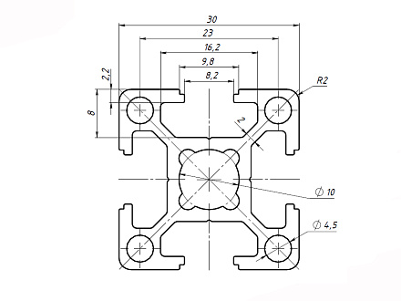 Алюминиевый профиль серии 30 с пазом 8 мм применяется для простых конструкций, воспринимающих средние нагрузки. Широко используется для создания выставочных стендов, легких дверей и перегородок, защитных ограждений, небольших лабораторных приборов и других конструкций. Профиль размером 30х30 может также использоваться для изготовления стеллажей и полок.