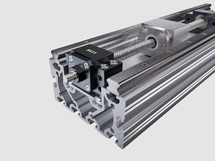 Комплект представляет собой готовое решение для построения прецизионной линейной оси. В состав входит шарико-винтовая пара SFS2010 с гайкой, набор опорных подшипниковых блоков и модуль крепления гайки.
