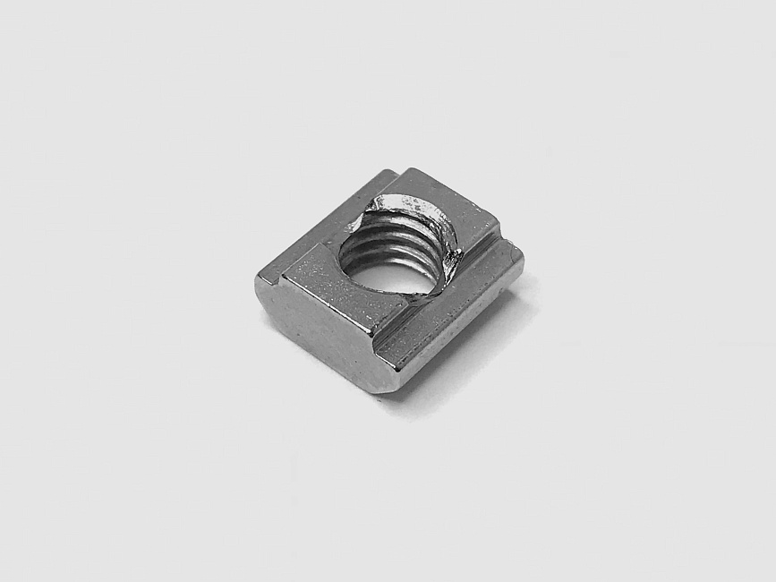 Специализированный сухарь с резьбой М6 для установки в узкий паз шириной 6 мм. Позволяет создавать прочные соединения в миниатюрных профильных системах. Плюс — решение для компактных и легких конструкций, где используется профиль малого сечения. Используется в точной механике, прототипировании.