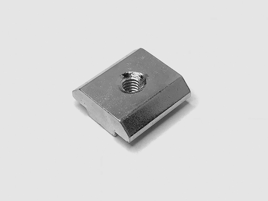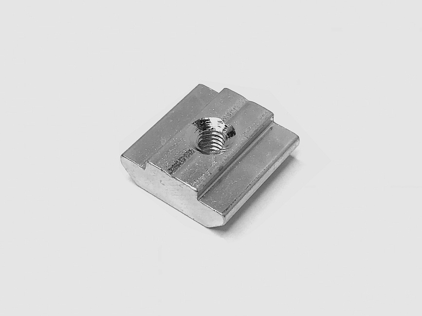 Компактный сухарь с резьбой М4 для паза 8 мм. Предназначен для крепления легких элементов. Преимущества — малые размеры, возможность плотного размещения. Используется в приборостроении, робототехнике, для крепления датчиков и проводки.