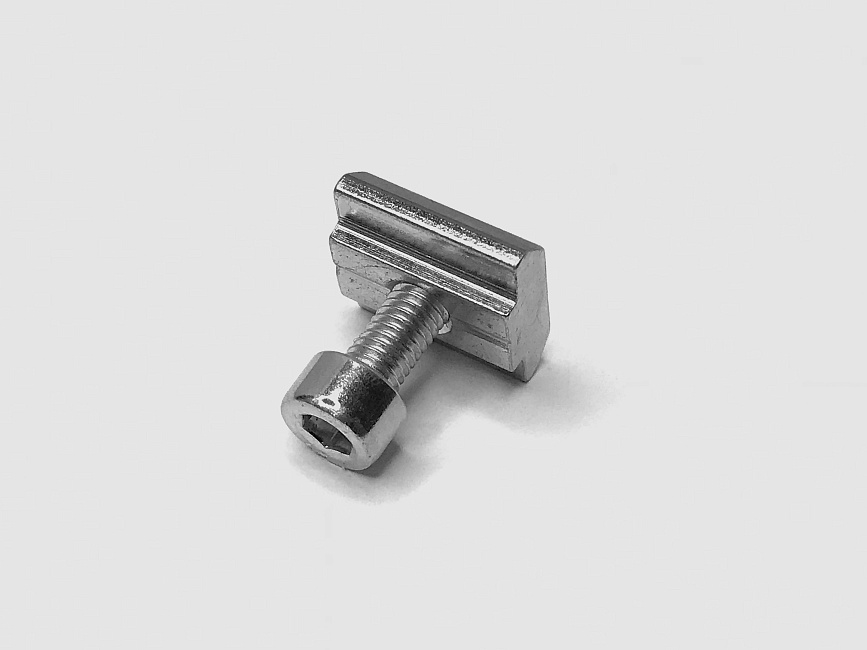Крепежный элемент с резьбой М5 для установки в паз шириной 8 мм. Предназначен для создания надежных резьбовых точек под винты М5. Плюсы — идеальный баланс между компактностью и нагрузочной способностью для широкого круга задач. Используется в общем машиностроении, сборке корпусов и рам.