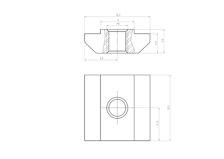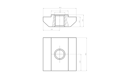 Сухарь пазовый устанавливается в профильный паз с торца и используется для крепления различных деталей и конструкций с применением подходящих болтов или винтов. В отличие от обычных Т-гайек, характеризуется большим контактирующим участком и обеспечивает более высокую прочность и надежность соединений.