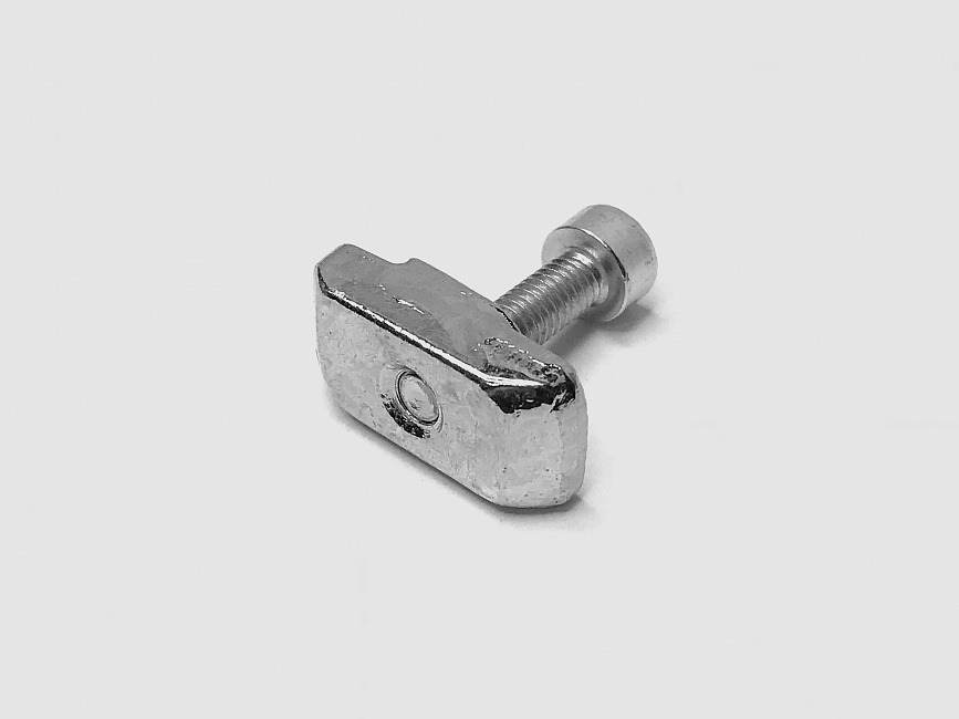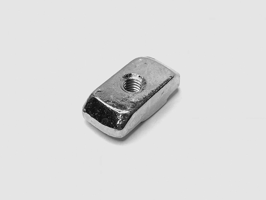 Т-гайка с резьбой М4 для широкого паза 10 мм. Обеспечивает быстрое создание резьбовой точки в крупных профилях. Плюсы — скорость монтажа, надежность фиксации. Применяется в сборке легких конструкций на базе профилей большого сечения.