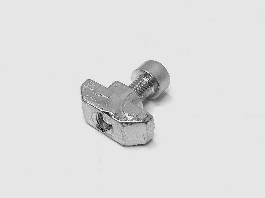 Т-гайка М5, разработанная специально для профилей серии 40. Ее геометрия точно соответствует пазу, что гарантирует стабильность. Плюс — высокое качество соединения. Используется в ответственных проектах и высококлассной мебели.