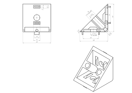Угловой соединитель из алюминия 60x60S с пазом 10 мм является надежным и многофункциональным элементом для формирования крепких и точных угловых соединений алюминиевых профилей размером 60х60 мм. Благодаря пазу шириной 10 мм, он упрощает установку и совместим с разными видами крепежа, что делает его незаменимым при монтаже каркасов и прочих конструкций.