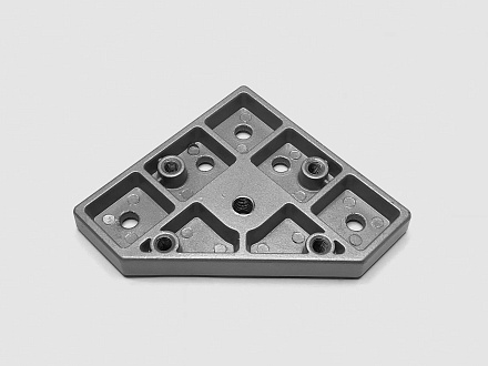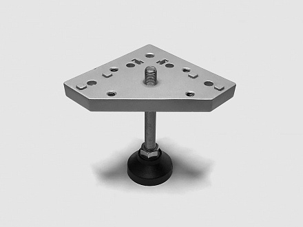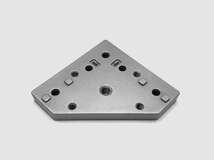 Универсальная монтажная плита для надежного крепления колес или регулируемых опорных ножек к алюминиевым конструкционным профилям 40 серии. Изготовленная из алюминия с серебристым анодированным покрытием, плита имеет размер 120х120 мм и сетку монтажных отверстий с шагом 45х75 мм, что обеспечивает точную и гибкую установку. Центральное отверстие с резьбой М12 предназначено для крепления опоры. Это решение позволяет легко добавить мобильность или устойчивость вашей конструкции, превращая статичный каркас станка, стеллажа или рабочего стола в функциональный модуль с помощью простого и надежного монтажа.