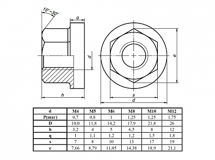 Гайка с фланцем М16 х10.0 DIN 6331(высок.) ОЦ, D73 Арт. D73