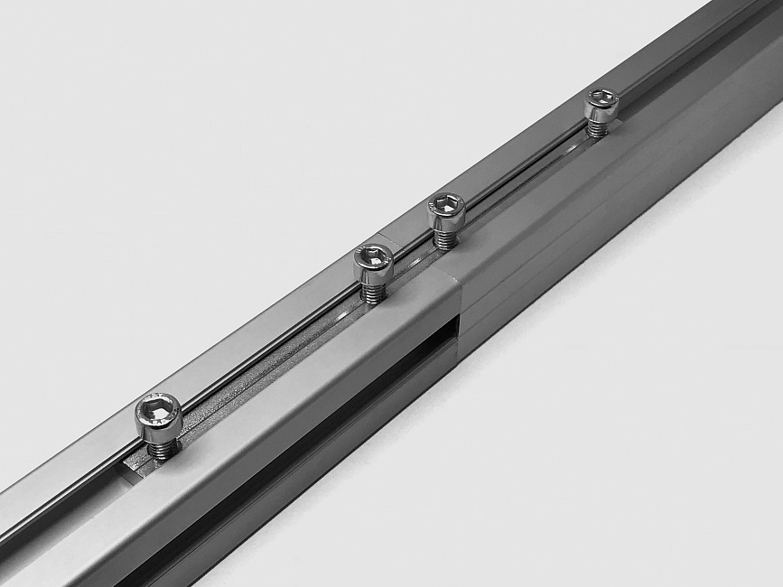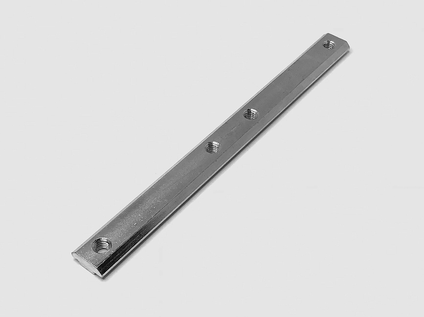 Жесткий соединитель длиной 180 мм с резьбой М6, предназначенный для стыковки двух алюминиевых профилей в торец. Устанавливается внутри паза шириной 8 мм. Ключевая особенность — создание неразъемного и прочного линейного соединения. Плюсы — простота сборки длинномерных конструкций, сохранение соосности профилей. Используется при сборке длинных направляющих, балок, каркасов.