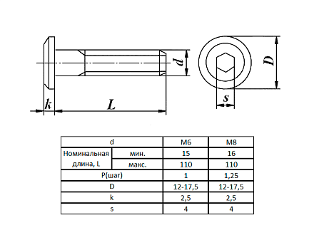 Крепежный элемент с плоской головкой и внутренним шестигранником. Применяется там, где важно обеспечить незаметное крепление и высокую точность фиксации. Идеально подходит для монтажных работ в мебельной промышленности, приборостроении и автомобилестроении. Благодаря своей форме создает ровную поверхность и предотвращает выступ крепежа над деталью. Установка осуществляется простым шестигранным ключом или насадкой, обеспечивая удобство и быстроту сборки.