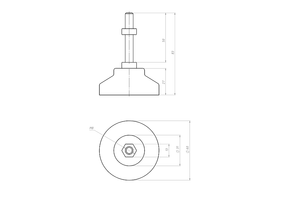 Опора регулируемая Ф60 М8х50, B693 Арт. B693