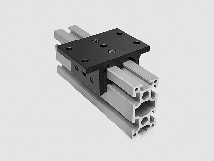 Алюминиевая скоба (слайдер) T-типа длиной 75 мм для профиля 40х40. Используется в системах, требующих большого хода и высокой устойчивости.