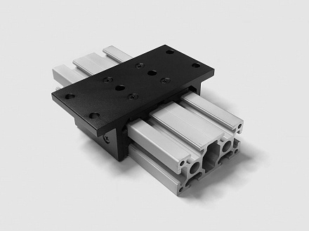 Алюминиевая скоба (слайдер) T-типа длиной 75 мм для широкого профиля 40х80 мм. Предназначена для создания подвижных узлов в силовых и крупногабаритных конструкциях.