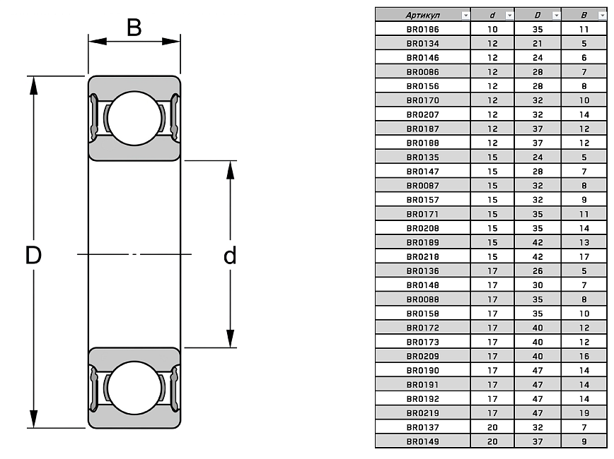 Подшипник 180301 АС17 TimCo ( 6301 2RS ) 12х37х12, BR0188 Арт. BR0188