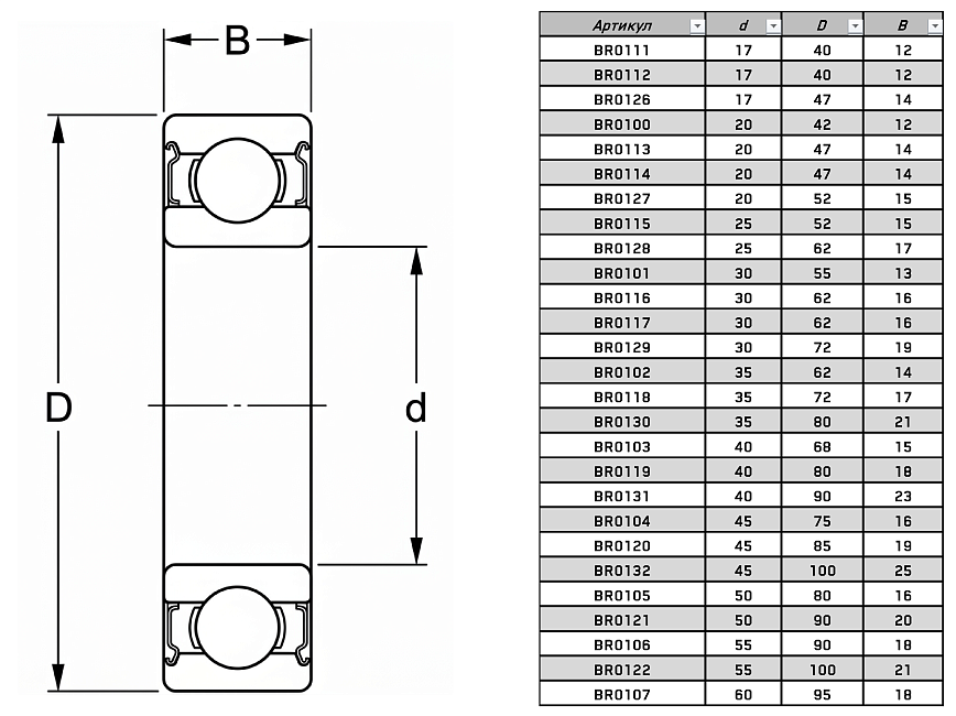 Тип тел качения: шарики