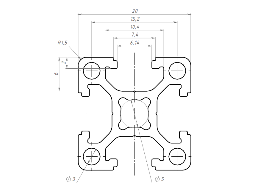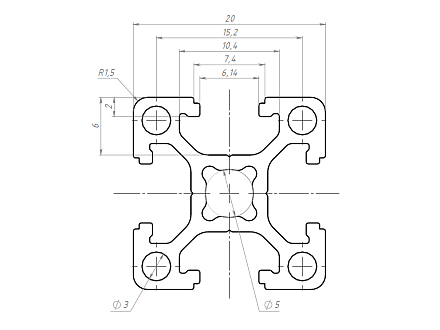 Алюминиевый профиль 20 серии с пазом 6 мм применяется для простых конструкций воспринимающих средние нагрузки. Также широко используется для создания выставочных стендов, легких дверей и перегородок, защитных ограждений, небольших лабораторных приборов и других конструкций. Профиль конструкционный 20х20 отлично подойдет для домашних конструкций.