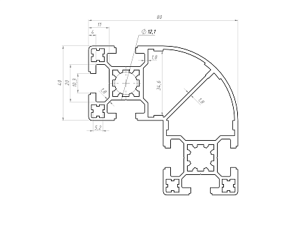 Профиль конструкционный 80х80.22R90L (Без покрытия) Арт. 488.22R90LX