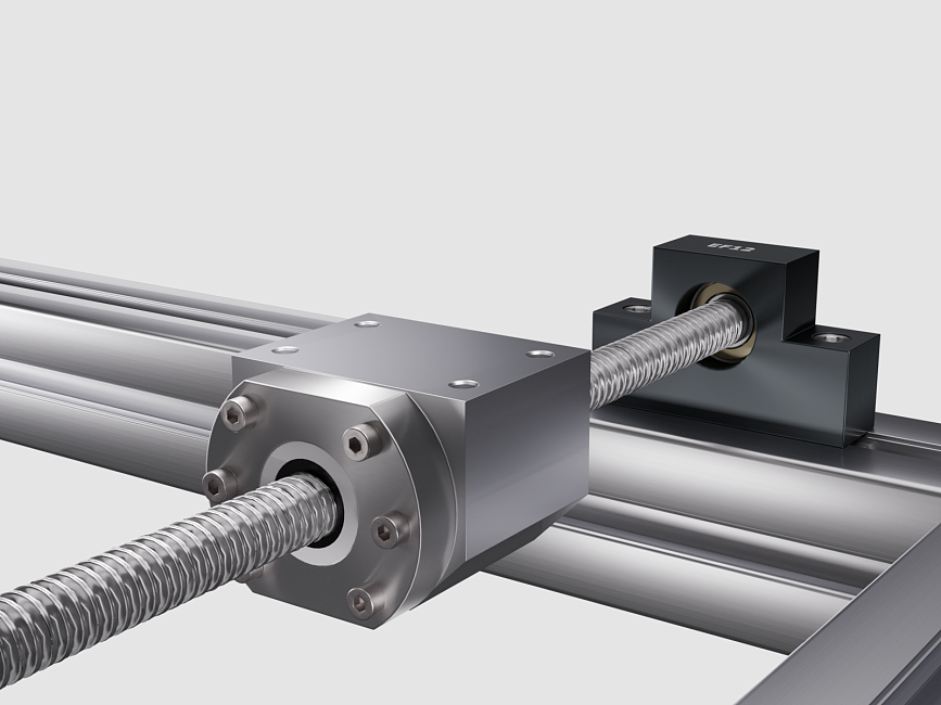 Комплект представляет собой готовое решение для построения прецизионной линейной оси. В состав входит шарико-винтовая пара SFS1605 с гайкой, набор опорных подшипниковых блоков и модуль крепления гайки.