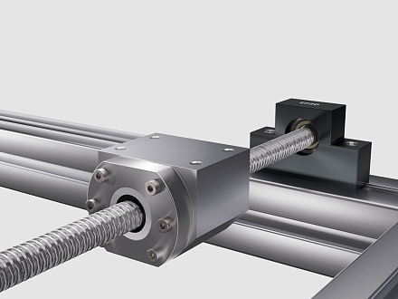 Комплект представляет собой готовое решение для построения прецизионной линейной оси. В состав входит шарико-винтовая пара SFS2510 с гайкой, набор опорных подшипниковых блоков и модуль крепления гайки.
