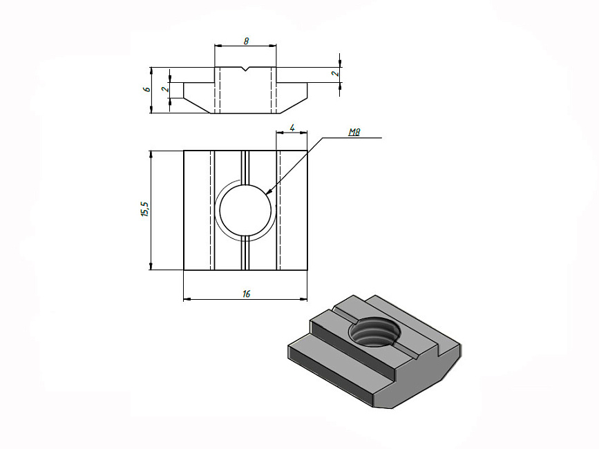 Сухарь пазовый М8, паз 8, A269 Арт. A269