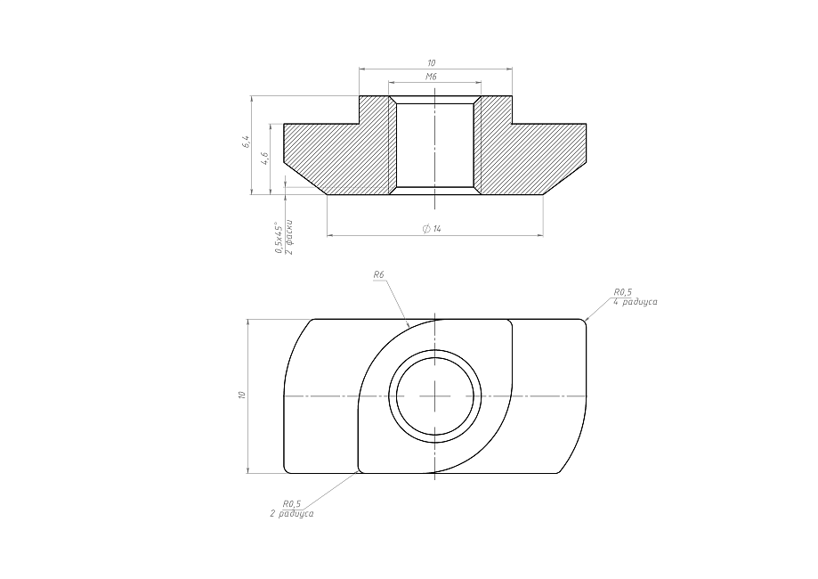 Силовая Т-гайка с резьбой М6 для паза 10 мм. Создает надежные разборные соединения в крупногабаритных профильных конструкциях. Преимущество — способность выдерживать высокие нагрузки. Применяется в станочных компонентах, робототехнике.