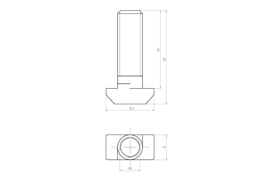 Т-болт М8х25 применяется для монтажа разных компонентов и конструкций на профиль с помощью соответствующих гаек. Вставляется он либо с конца профиля, либо прямо в паз по всей его длине. За счёт поворота болта при затягивании гайки обеспечивается надежная фиксация.
