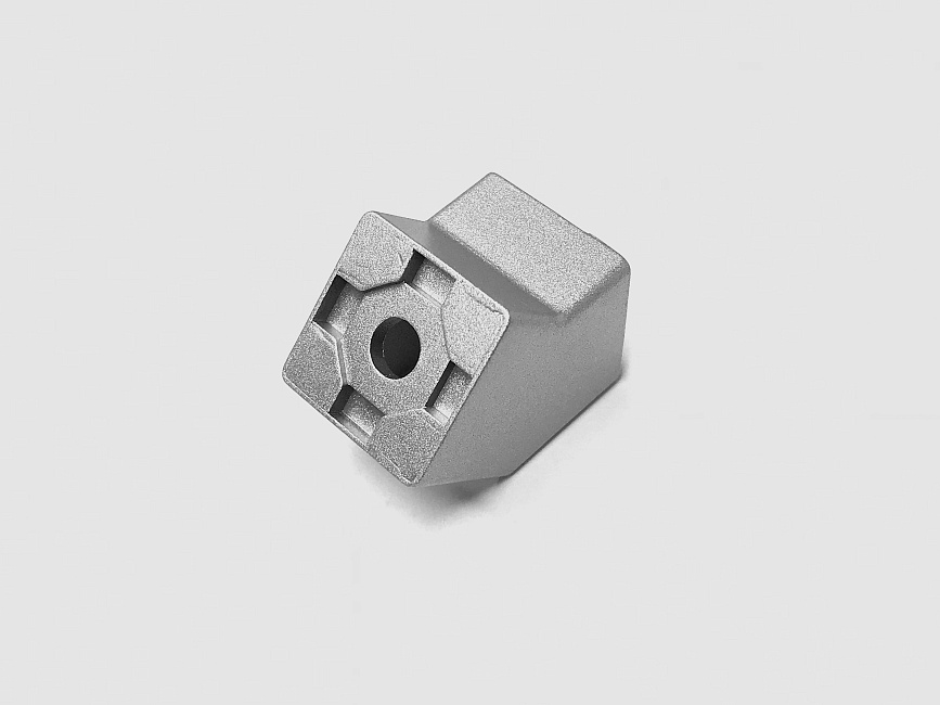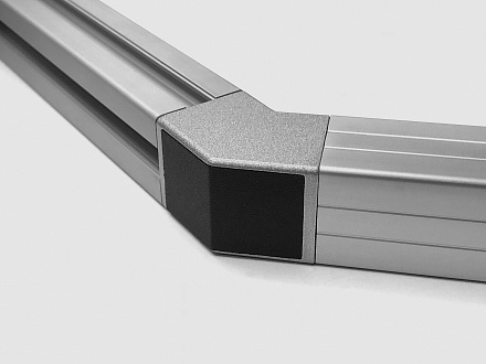 Соединитель для профилей 30х30 мм, обеспечивающий угол 45 градусов. Позволяет создавать сложные многоугольные рамы. Главный плюс — расширение конструктивных возможностей. Применяется в декоративных рамках, специальных инженерных проектах.