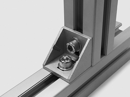 Алюминиевый соединитель для жесткого углового крепления двух профилей сечением 40х40 мм под углом 90 градусов. Конструкция предназначена для установки в 8 или 10 паз, обеспечивая прочное и эстетичное соединение.