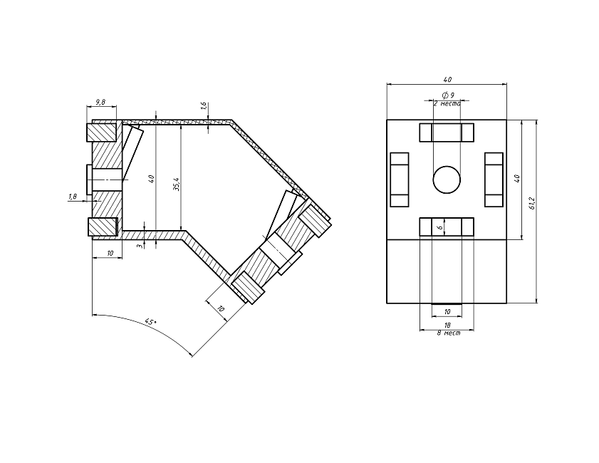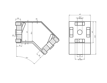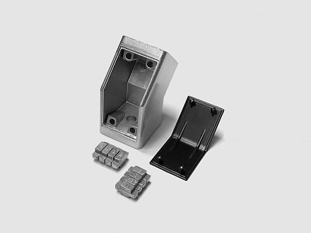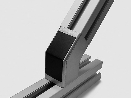 Соединитель для жесткого углового крепления профилей 40х40 под углом 45 градусов. Совместим с профилями, имеющими паз 8 или 10.