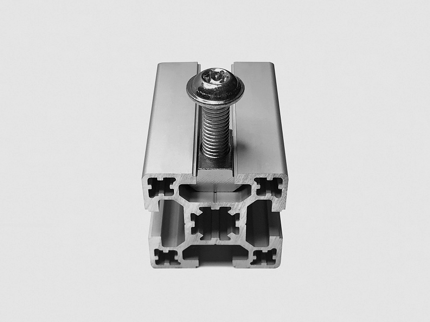 Этот крепежный элемент предназначен для надежного соединения двух конструкционных алюминиевых профилей. Головка винта специально разработана для плотной фиксации в пазу одного из профилей, что обеспечивает устойчивость конструкции и предотвращает самопроизвольное откручивание. Винт легко вкручивается в торец второго профиля, создавая прочное соединение. Идеально подходит для сборки каркасов, стеллажей и других конструкций, где важна надежность и аккуратность крепления.