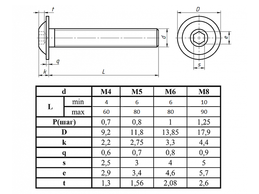 Винт M4х8 с полукруглой головкой с буртом является стандартным крепежным элементом для надежной фиксации соединений в модульной системе алюминиевых конструкционных станочных профилей.